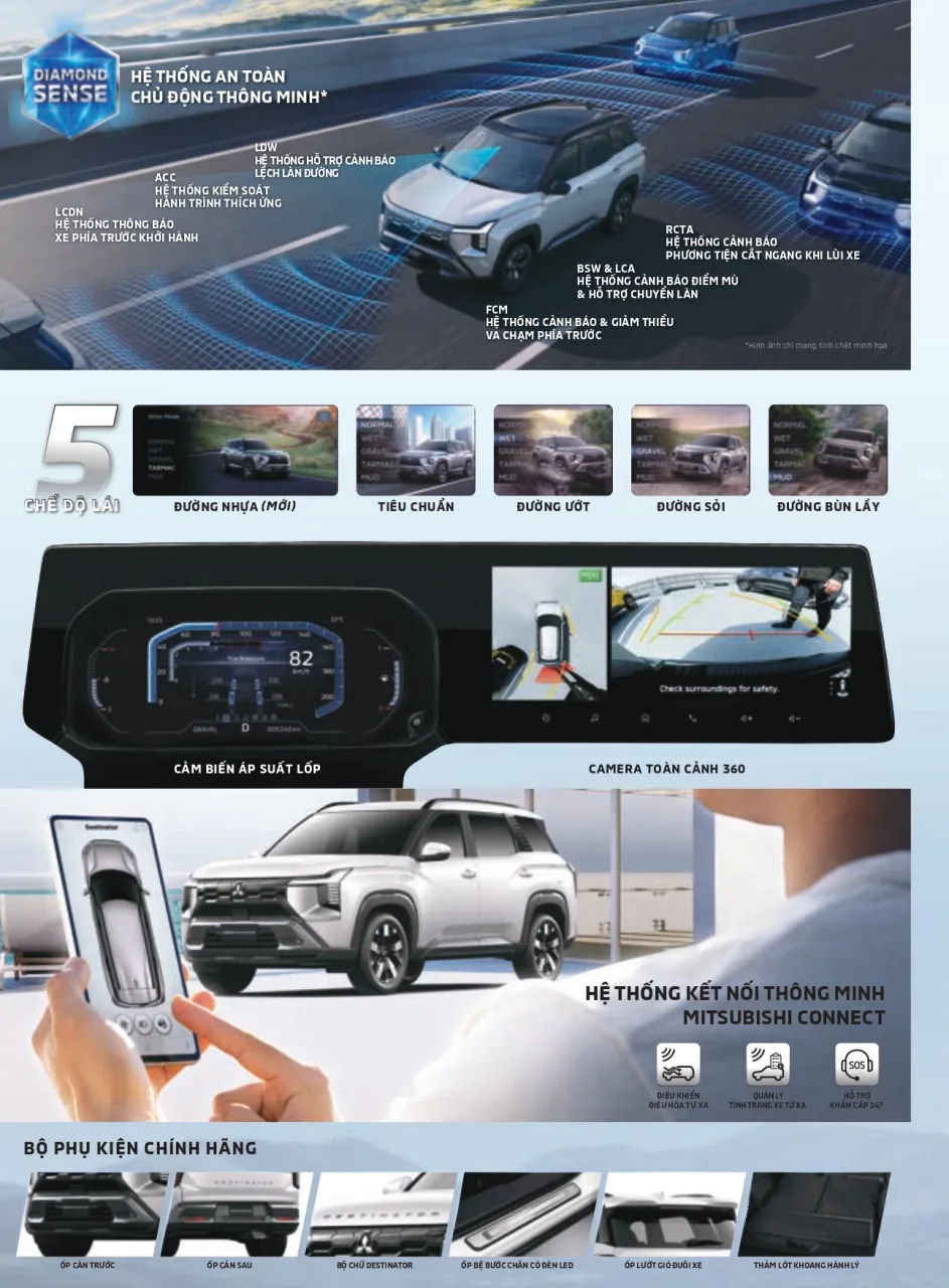 Lần đầu tiên, hệ thống kết nối xe thông minh MITSUBISHI CONNECT được giới thiệu và trang bị trên Destinator (phiên bản Ultimate). Hệ thống nổi bật với các tính năng kết nối thông minh và các chức năng tiêu biểu: khởi động điều hòa từ xa, thông báo tình trạng xe, hỗ trợ khẩn cấp SOS (24/7). Ngoài ra, người lái có thể sử dụng điện thoại thông minh để kiểm tra mức nhiên liệu và xác định vị trí xe tìm kiếm xe từ xa.