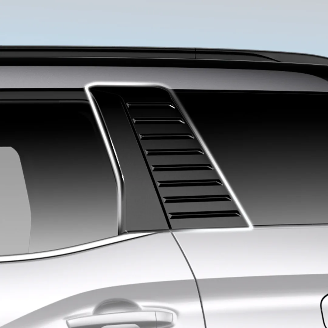 Bản lĩnh SUV được minh chứng qua khoảng sáng gầm xe cao 214 mm khi có tấm chắn và cao 244mm khi không có tấm chắn, mâm xe 18 inch và góc tới – góc thoát tối ưu, giúp xe dễ dàng vượt qua các chướng ngại vật. Các đường nét dập nổi cơ bắp, mạnh mẽ và vững chãi. Cột C với họa tiết chạm khắc hình bậc thang độc đáo, một điểm nhấn thể thao trong thiết kế tổng thể.