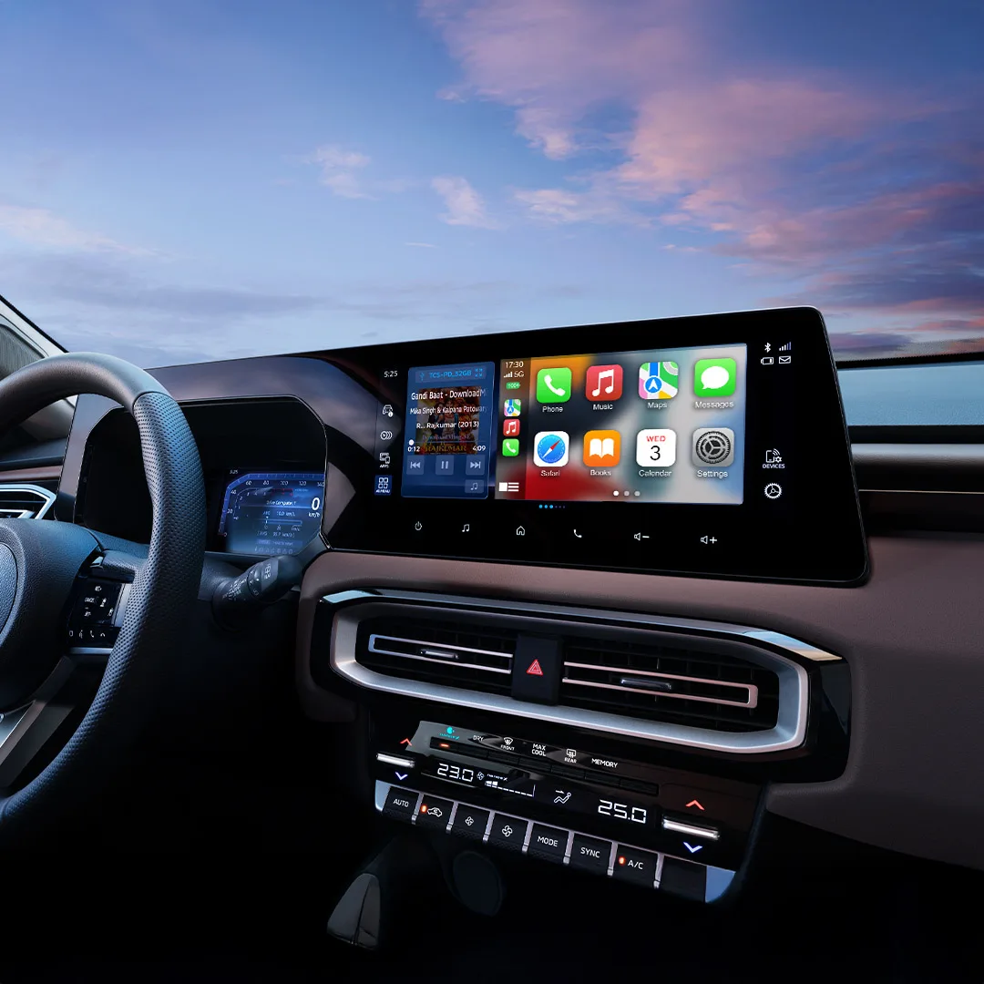 Khu vực bảng điều khiển trung tâm được bọc vật liệu mềm cao cấp, trải dài liền mạch đến ốp cửa tạo cảm giác không gian rộng mở và thoáng đãng. Màn hình giải trí kích thước lớn 12.3-inch hiện đại, hiển thị đa dạng và trực quan, kết nối Apple Carplay/ Android Auto không dây và điều chỉnh đèn viền nội thất. Màn hình thông tin kỹ thuật số 8-inch thể hiện các thông tin khi lái xe một cách rõ ràng, đầy đủ.